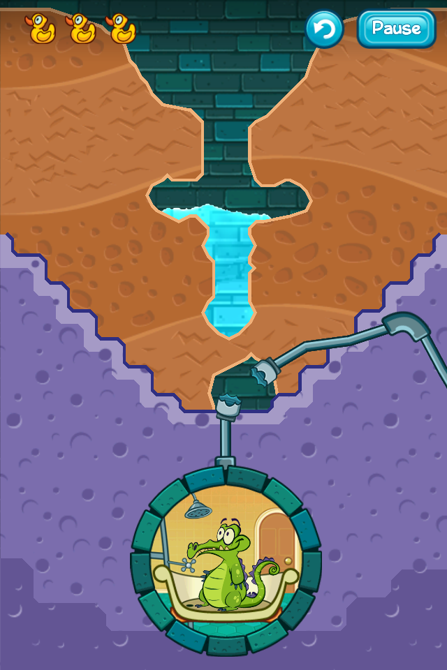I have an addiction. Or pretty close to one. It can certainly interfere with productivity, and my husband complains that I don’t listen to him because of it. It’s Disney mobile’s “Where’s My Water?” Most people, especially those bearing iPhones and Android phones, know of this game. It is a terribly fun little game of physics, cartoon alligators, and animated sewers. The basic premise is this: get the water to Swampy (the loveable non-violent, cleanliness-seeking pacifistic gator hero). There are multiple levels of increasing difficulty. You dig through dirt, move water, deal with green ooze and acidic poison water, find hidden objects, and water little rubber duckies to accomplish the goal of filling Swampy’s bath. (Incidentally, I highly recommend this game, especially for families. My 5-year-old daughter also loves this game and has progressed further than my husband at this time.)